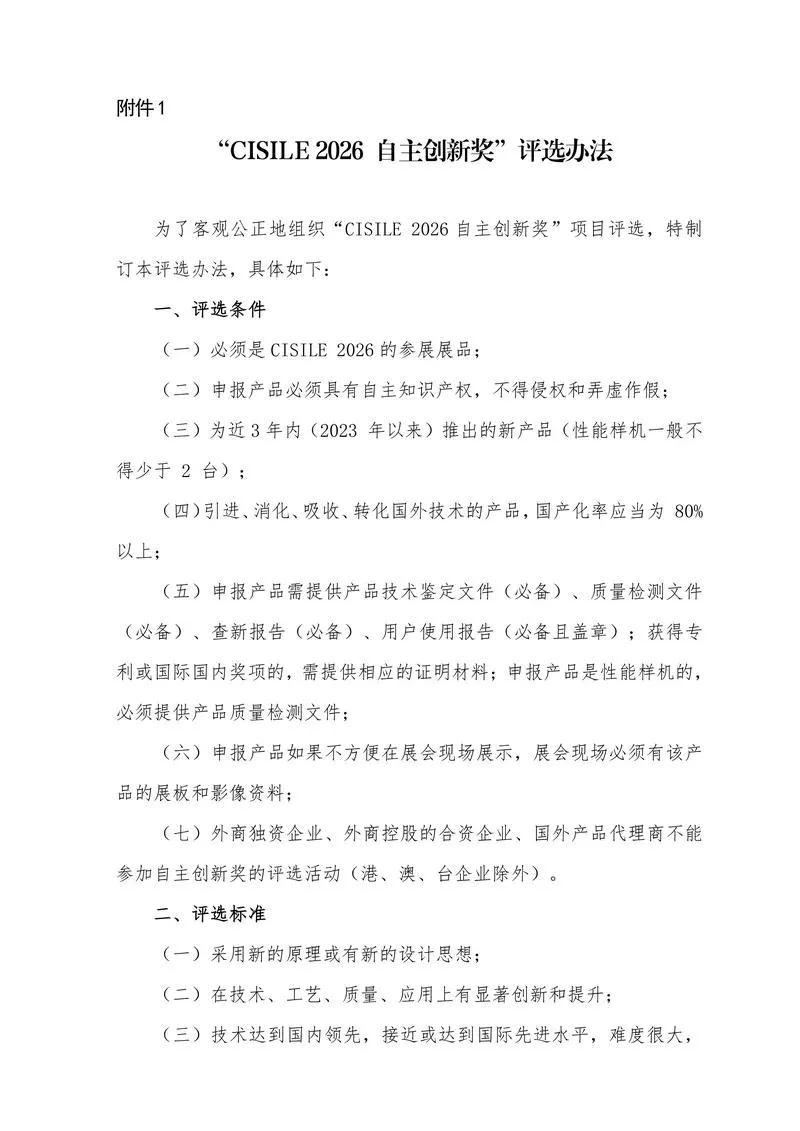 附件:1.“CISILE 2026 自主创新奖”评选办法