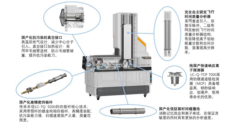 液相色谱-四极杆飞行时间串联质谱仪(LC-Q-TOF MS)是将液相色谱仪与四极杆-飞行时间质谱联用的一款研究型实验室分析仪器。LC-Q-TOF MS主要部件组成包括液相色谱仪、离子源、大气压接口、四极杆滤质器、碰撞池、离子光学透镜与飞行时间质量分析器等。仪器以四极杆作为质量过滤器,以飞行时间质谱作为质量分析器,是一种能够实现同时定性定量的高质量分辨质谱。