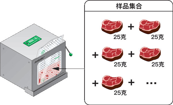 JumboMix 是样品集合的最佳选择。大容量均质室允许样品叠加至高达375 克,