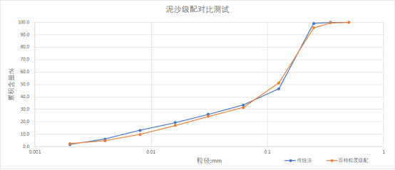 ● 用标准河流泥沙颗粒级配分析方法验证颗粒级配准确性:在下图中蓝线为标准的颗分数据,红线为测试数据, 二者具有良好的一致性。