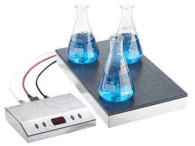 > 控制单元——磁力搅拌和加热有单独的控制单元 , 清晰的 LED 显示用于设置搅拌速度 , 搅拌功率和内置加热器的温度 , 过温保护功能 , 外接 Pt100 温度传感器 , 可以直接测量控制样品温度 , 带 RS232 通讯接口