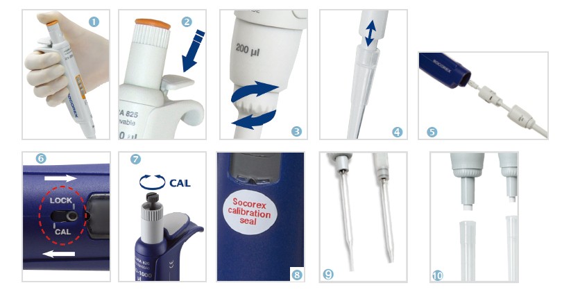 无需特定工具的即校式校正系统,用户可随/时对移液器自己进行校正,也可以委托SOCOREX 在中国的标准实验室进行校准