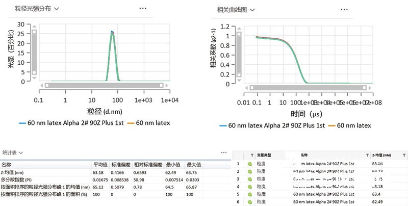 NS-90Z Plus良好的重现性——60nm标号乳胶微球标样 (Thermal ,标称值 :62± 3 nm)