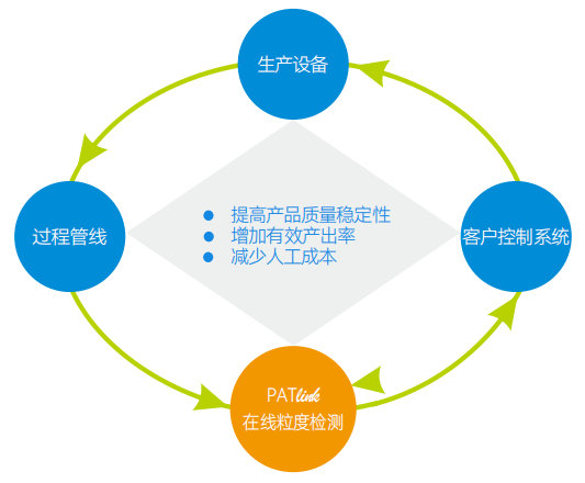 > 无需人工从车间取样,到实验室完成样品测量,在粉体生产加工的全过程都可以实时了解当前以及回溯粉体粒度大小的变化趋势