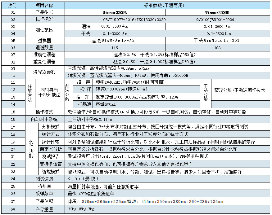 一台仪器可满足多种样品的测量需求,无论是对水敏感、易团聚的样品(适合干法),还是常规可分散于液体的样品(适合 湿法),都能进行粒度分析,灵活选择进样方式,提高了测量的针对性和准确性,大大拓展了仪器的应用范围。